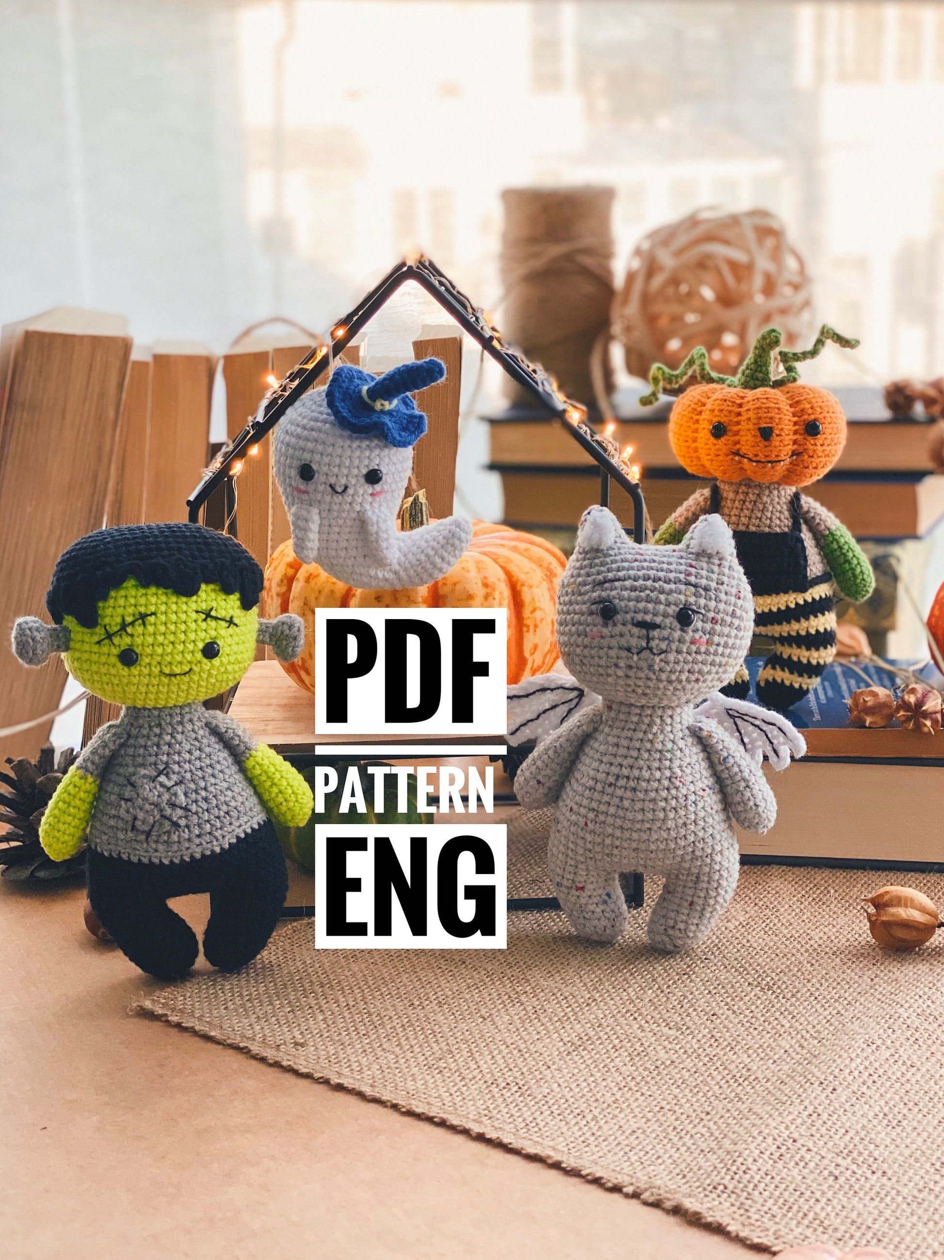 PDF Amigurumi Patterns for creating crochet Halloween set.